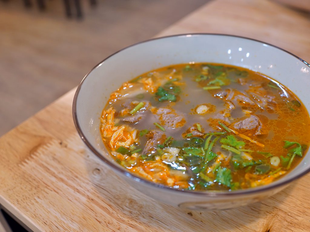 淮南牛肉湯是他們當地很著名的美食,源自清宮御膳秘方,以食養生,而店名”麻燦”是淮南地方口頭語,意指”非常好吃”的意思。