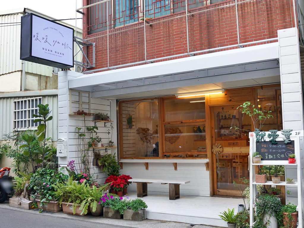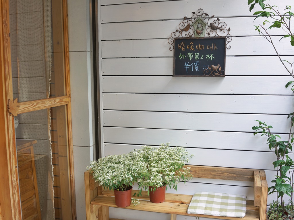 暖暖咖啡位於中央路312巷內,謐謐甜點旁邊的巷子裡,店面外觀以白色、木頭色系為主,並搭配許多花花草草,也因為花草叢生的關係,蚊蟲還蠻多的,用完餐我也被叮了一個包,建議大家來訪之前可噴一下防蚊液,我是認真的(握拳)