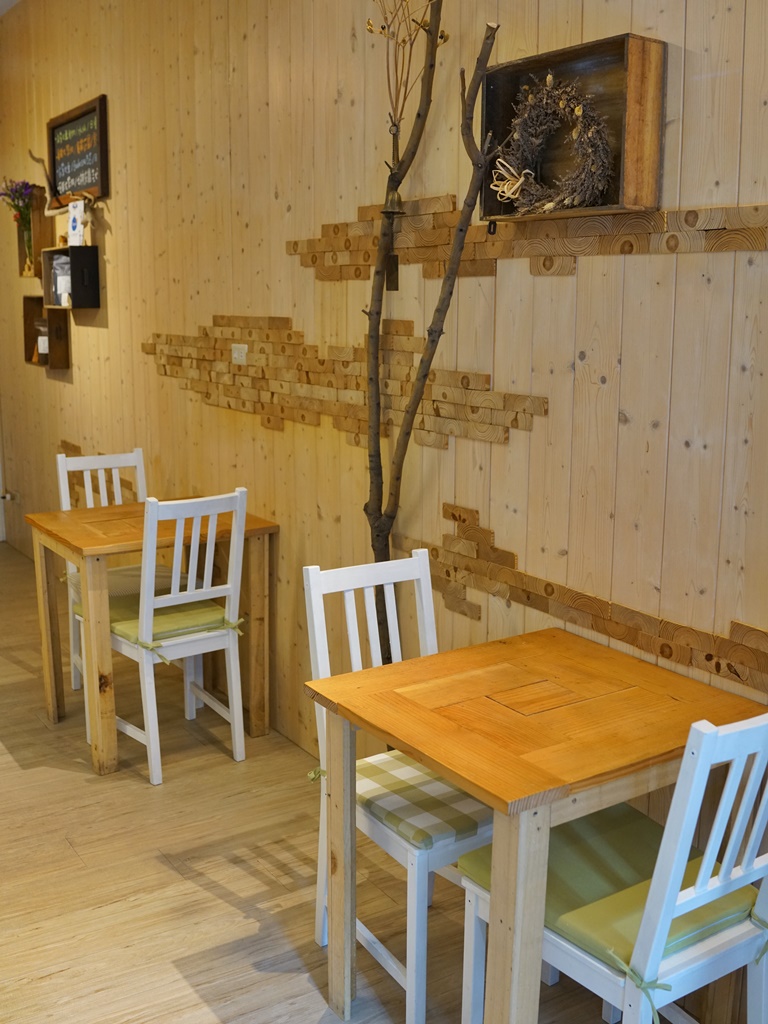 店內環境以木頭色調為主,搭配微微昏黃的燈光,用餐氣氛十分溫馨,但說實在室內比較無法拍出美美的照片,而座位大約可同時容納20人左右,小小的空間算是蠻能塞的!