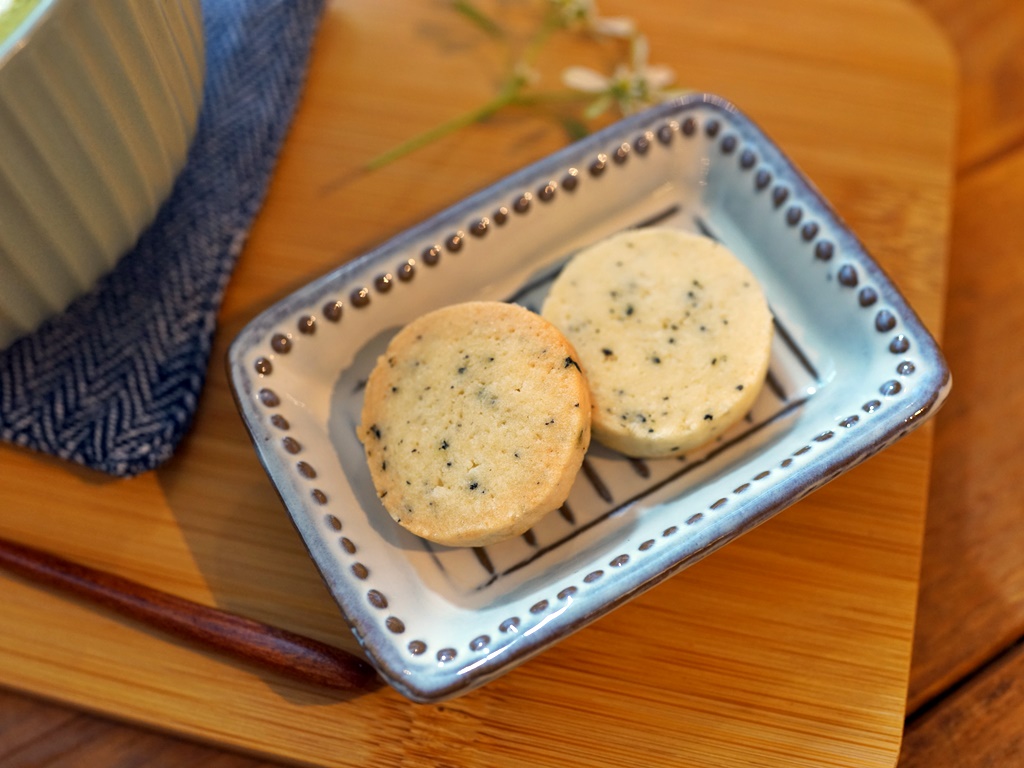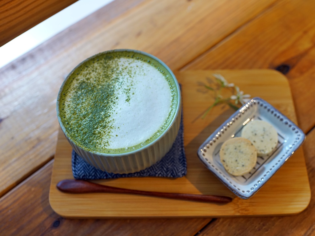 我的抹茶牛奶旁邊有放手工餅乾,不確定是點就會附,或是純粹店家招待?因為阿華田點的拿鐵旁邊就沒有放餅乾,餅乾是伯爵茶口味,香氣十足、口感酥脆!