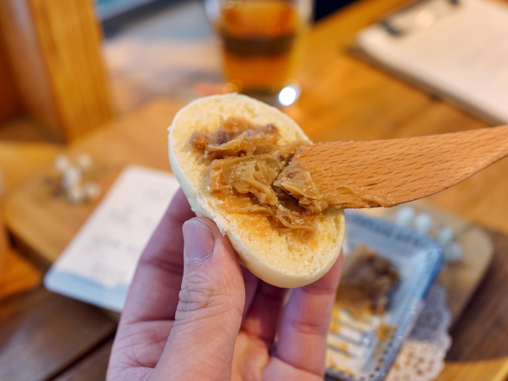 最後是原味的手工麵包搭配店家自製的堅果太妃糖醬,充滿彈性的麵包與帶有微微堅果顆粒的太妃糖醬好搭配,吃起來不會過於甜膩!雖然手工麵包價格偏高,但真的都很好吃