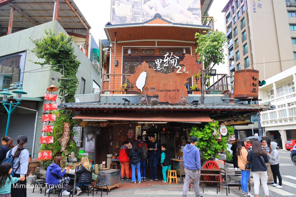 走到了府中街尾就是黑輪2元,也是孔廟商圈這裡蠻熱門的特色美食,每支黑輪、關東煮都是賣2元5元,這幾年來好像都沒漲價,隨意點個幾串,坐在路旁的小板凳上吃,也是挺不錯的體驗,好不好當然是吃見仁見智,不過挺好玩的。