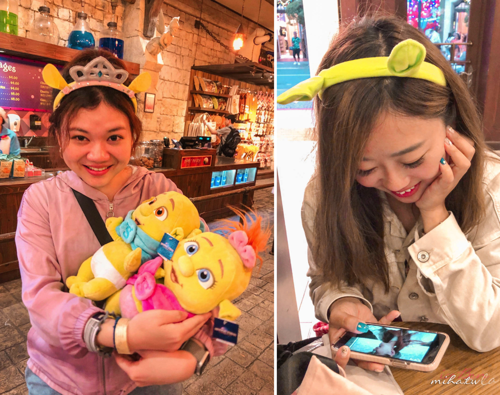 我們這次是史瑞克和費歐納公主,表演看到他們出來我們大尖叫~~~~去環球影城一定要買造型頭飾戴上!而且最好一開園進去就買!因為這樣才能用一整天,不管是玩設施或是看表演、遊行都特別有感覺!回家也是一個很值得的紀念品~絕對不會浪費錢!出現在每一張照片也讓自幾更沉浸在環球影城的故事情節中,值得!