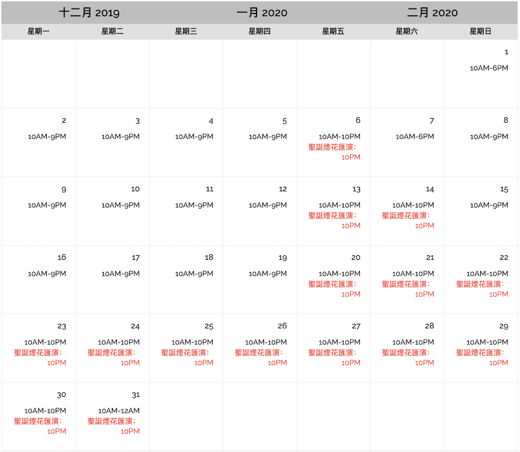 ・『聖誕音樂煙火秀』:聖誕煙火沒有每天有,想看要留意日期唷~