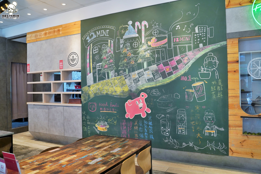 黑板牆面上還有可愛逗趣的圖樣,招牌飲品、新品火鍋、台中特色