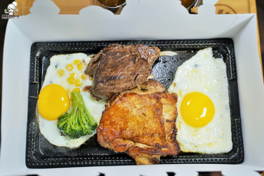 鐵板牛排還特製擋油紙,不讓油噴到消費者,圖樣超逗趣(四款隨機圖樣)