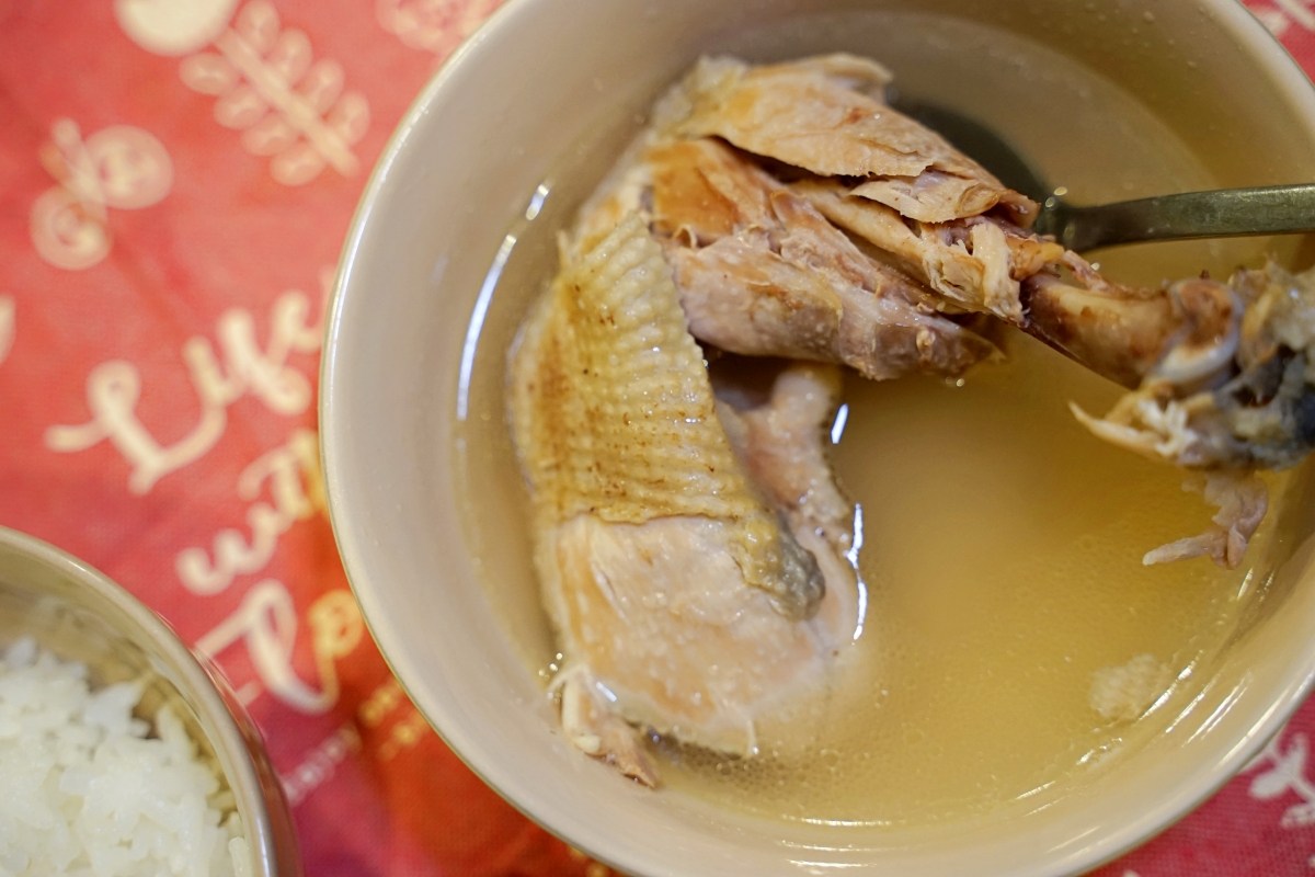 這道雞湯香氣清香,喝得到香醇的口感與雞湯獨特的風味,我覺得非常療癒,雞肉也蠻軟 Q。大家要記得控制加熱的時間,太久的話肉可能會有一點乾柴,但基本上照說明加熱應該是沒問題的。