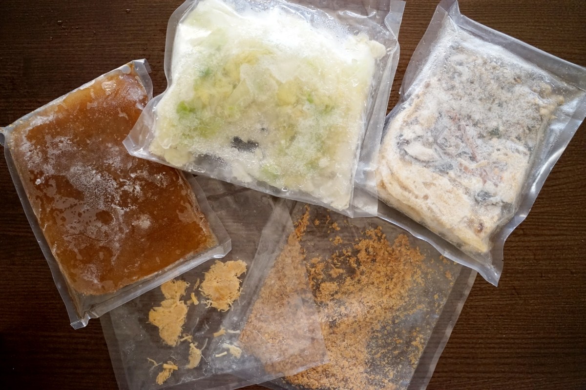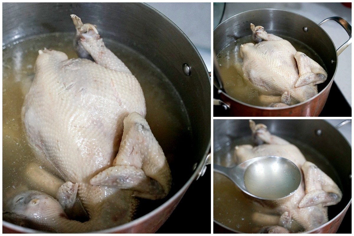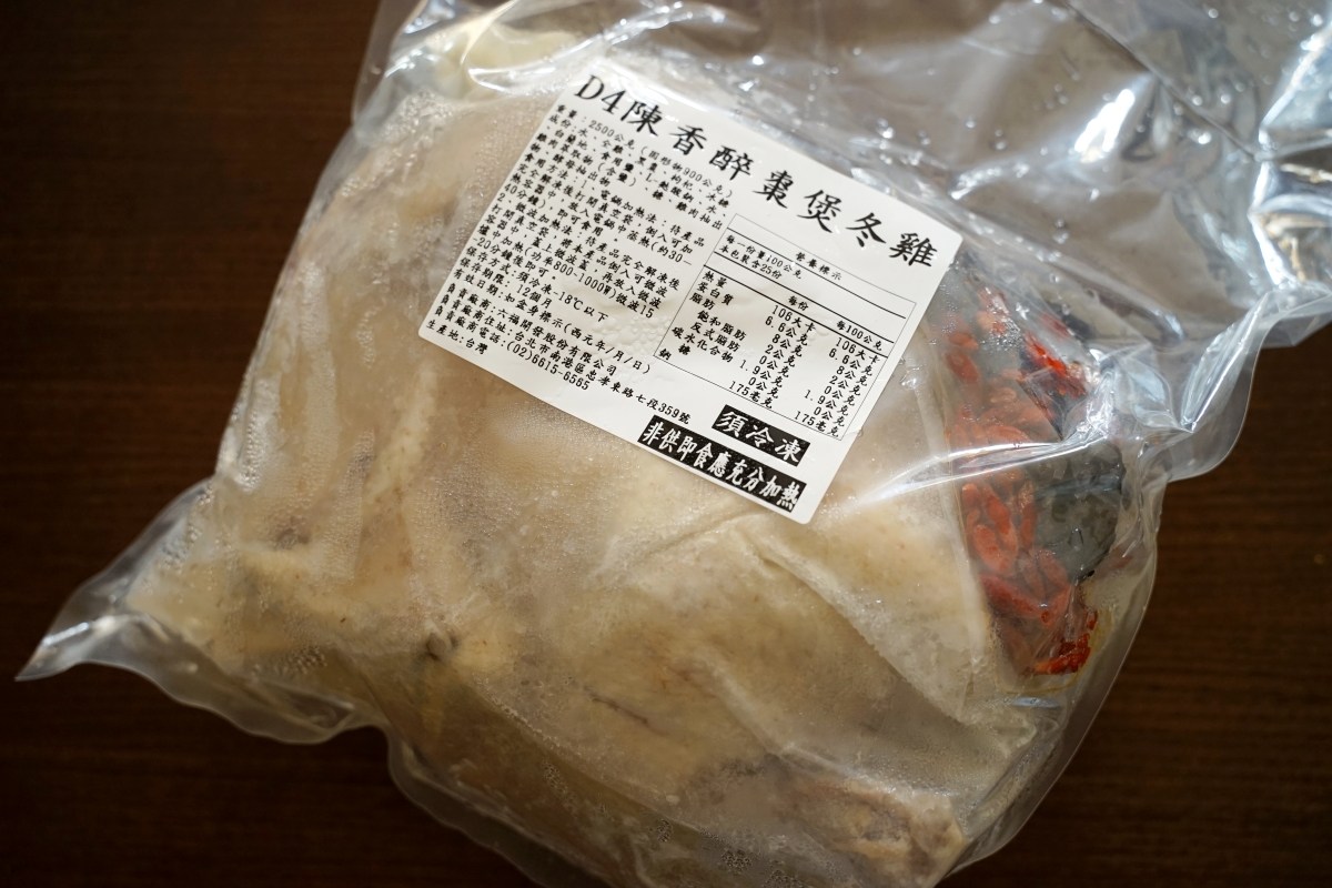 雞湯處理也超簡單,因為全雞已經有熟,只要完全退冰直接倒入鍋內,放進電鍋蒸熱,大約 30-40 分鐘就可以端上桌。如果要用微波的話也可以,退冰後倒入可以微波的容器內,微波 15-20 分鐘左右就可以。
