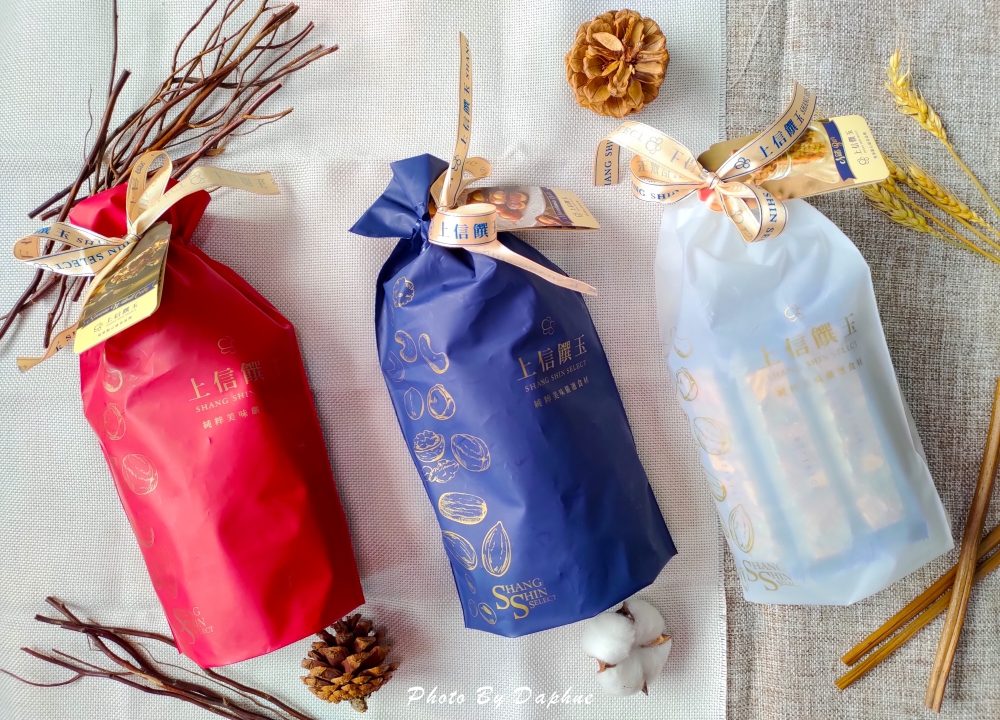 每年的秋冬都是有藉口買些點心來囤積過冬的時節,早年在電子業上班時,團購風氣盛行,揪過的團五花八門,腦波弱之下,熱量、價錢看都不看,就跟著買下去,而現在有點年紀了,在挑選零嘴這方面,無法像年輕時,吃得毫無保留,趨向於選擇低甜度的食品,分次、少量來慢慢品嚐。又因為 Daphne 全家都很愛吃堅果類的食品,所以這類型的食品,無論新品牌或是老店,都吃過不少家。這次入手的「上信饌玉」,很驚訝的是這個品牌成立僅有六年,製作產品與包裝上卻十分純熟,不比傳統名店遜色。大量手工、少添加物、不做過多調味的製作手法,給長輩吃也很放心。其中明星商品太妃糖更是獲得「食品界的米其林」iTQi風味絕佳獎章,得到全球專家的肯定,這應該沒幾家同質產品能做到。