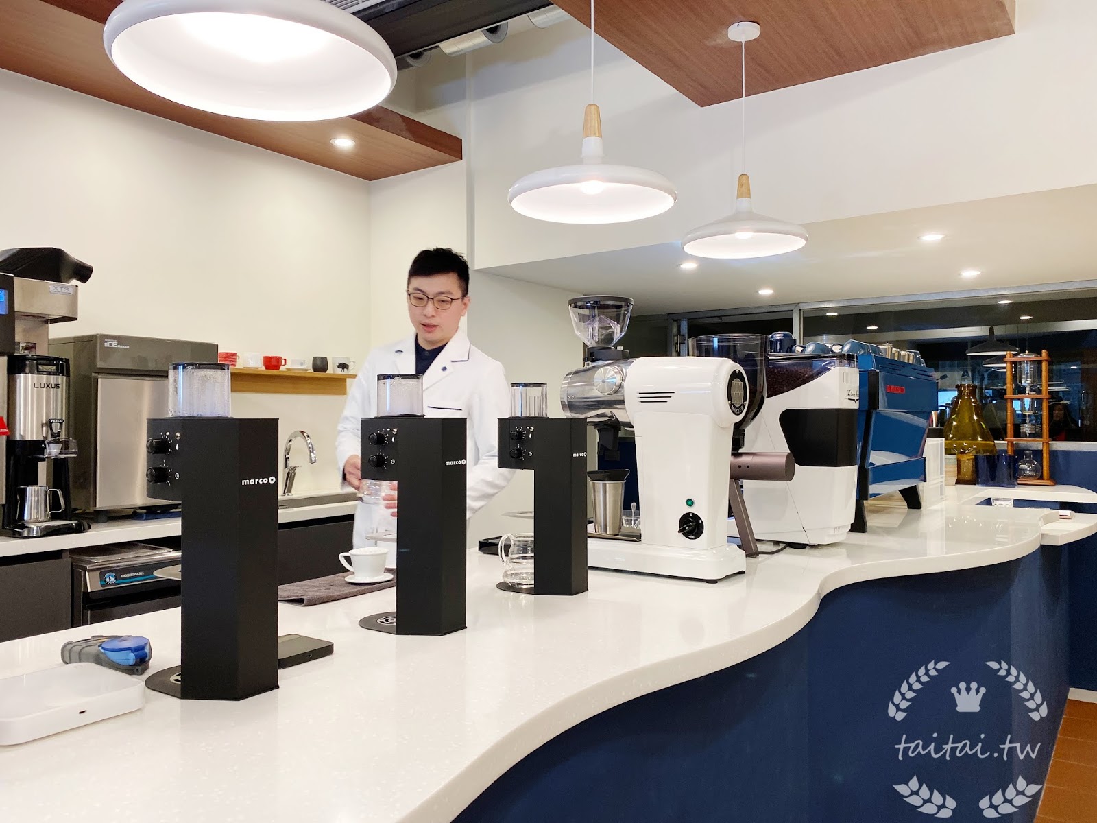 THE NORMAL座落於台北仁愛路上,有質感的深藍外裝讓人很難不將眼神停留在這家店上。推開門,店內空間舒適但並沒有太多座位,穿著帥氣白袍的店長Ric迎接我們,這是一家主打外帶也能喝到品質穩定的精品咖啡店。