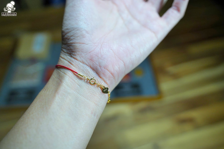 帶有金元寶的紅繩手鍊,很有招財喜氣、過年過節打牌一定要帶出門,哈哈