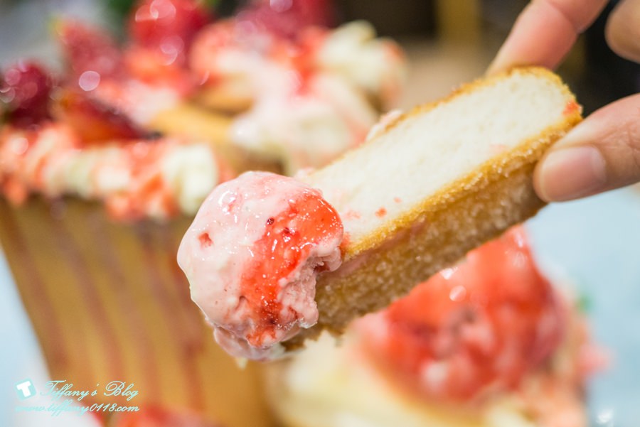 草莓戀曲蜜糖吐司有新鮮草莓、草莓冰淇淋、卡士達醬、酥脆吐司條,端上桌後一定要先拍照打卡PO個IG,然後店員就會幫忙切開蜜糖吐司,把冰淇淋取下,讓客人可以拿取裡面的土司條沾冰淇淋和卡式達醬一起吃。我很喜歡他們家的蜜糖吐司做的超級到位,吐司的部分烤得很酥,外面裹著砂糖單吃也甜滋滋~如果不想吃這麼甜的話可以沾冰淇淋一起吃,會稍微中和一下味蕾,無論單吃還是搭配著吃都很棒!!