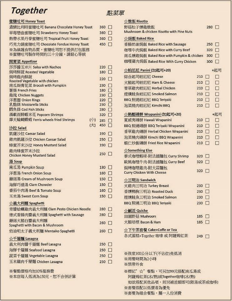 Together cafe 菜單