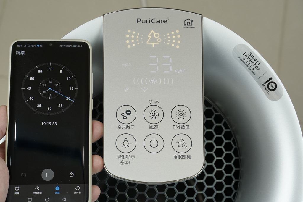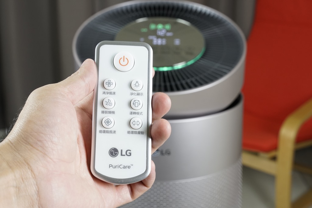 除了用手機遙控外,PuriCare 360 還有附上實體遙控器,讓你在清淨機旁時可以更方便操作。