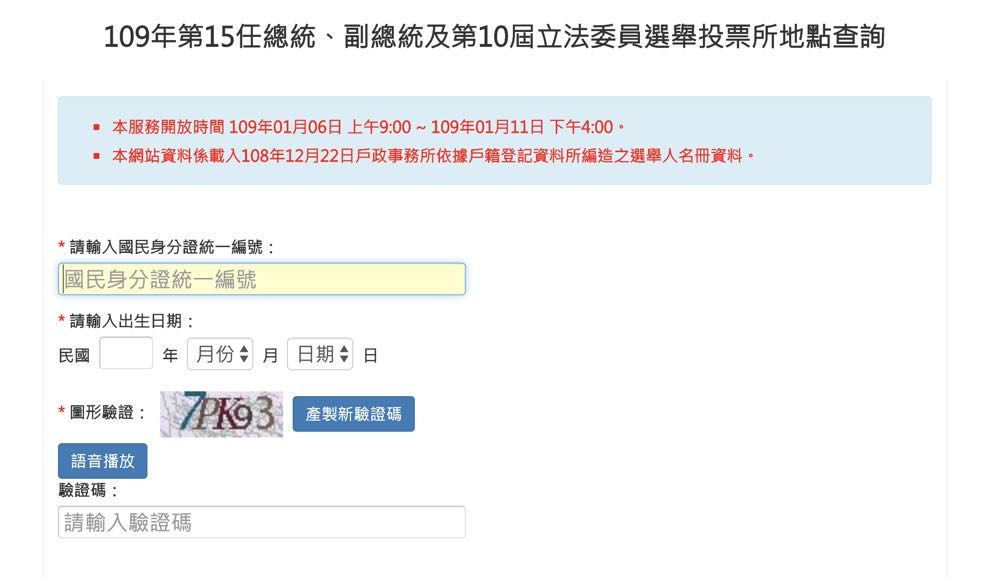 本週六 1 月 11 日就要迎來台灣第 15 屆總統、副總統及第 10 屆立法委員選舉了,相信不少朋友都已經準備好返鄉為台灣盡一份公民的義務。不過如果返家的匆忙,沒看到自己的投票通知單怎麼辦?其實大家不要慌,沒有投票通知單,內政部、中選會也都提供了查詢自己投票所的服務唷!