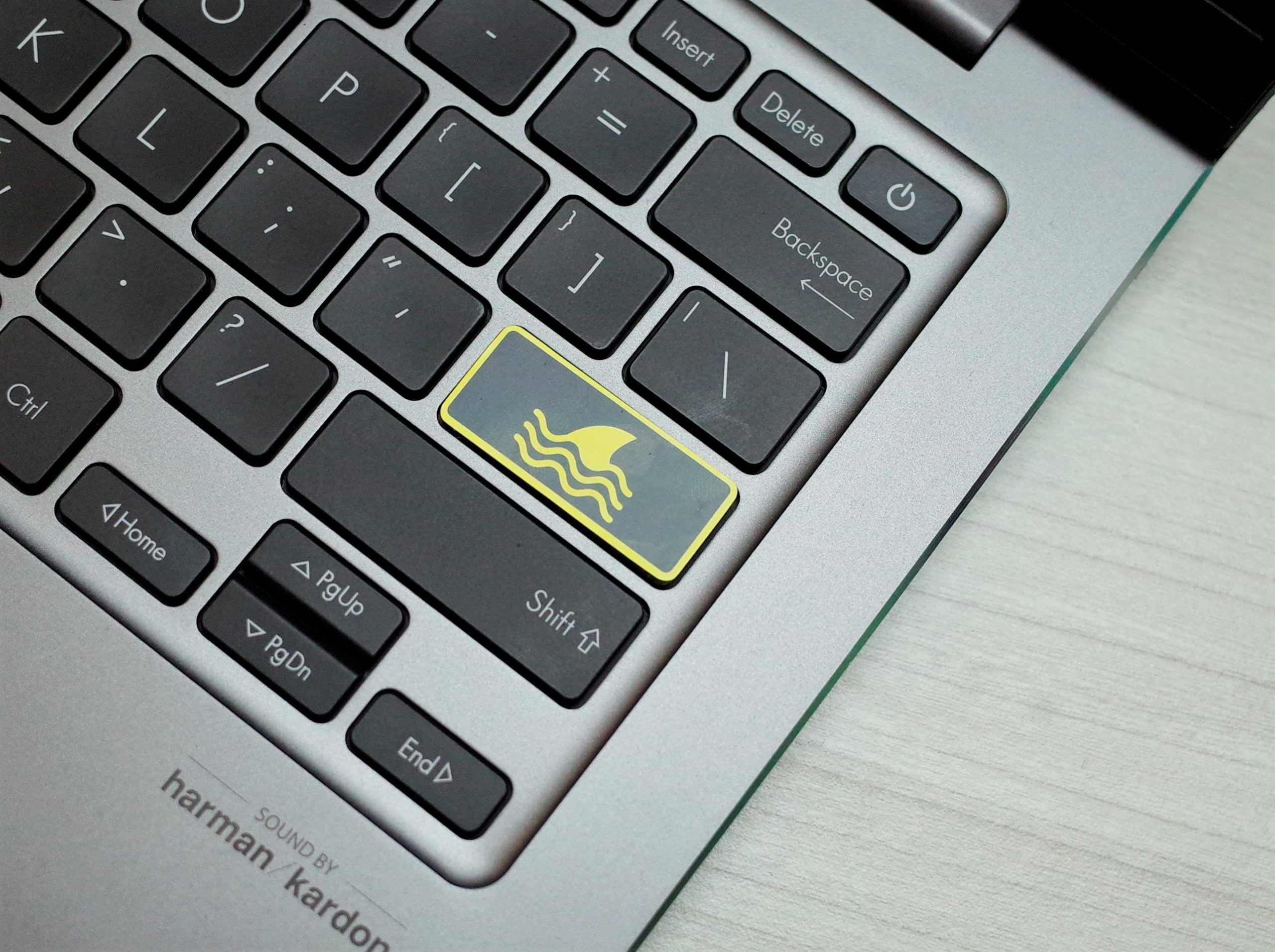 比較特別的是,VivoBook S 全系列在 Enter 鍵周圍做了螢光色的撞色效果,且筆電會隨機附上不同的貼紙,讓用戶在機身上蓋、鍵帽做點裝飾,頗具巧思。