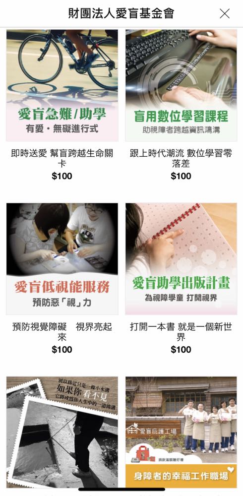 2) 選擇有興趣的單位點進去後,可以看到能夠配合的捐款計畫,以及每一項計畫我們的捐款能夠盡到什麼樣的幫助。