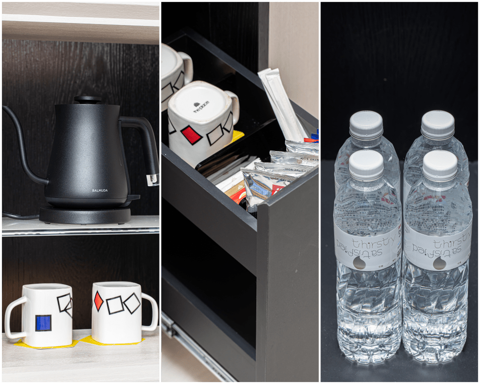 飲料吧台區域相當完整,但最特別的地方則是提供了百慕達的手沖壺,這實在是太時尚了啊!