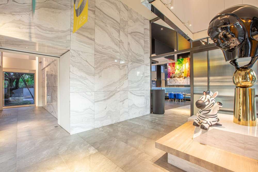 而新穎時尚的外表裡面,也不會給人過度生冷或是難以接近的感受。在各式各樣的藝術品裡,最讓小朋友們印象深刻的,就是這隻可愛的小斑馬
