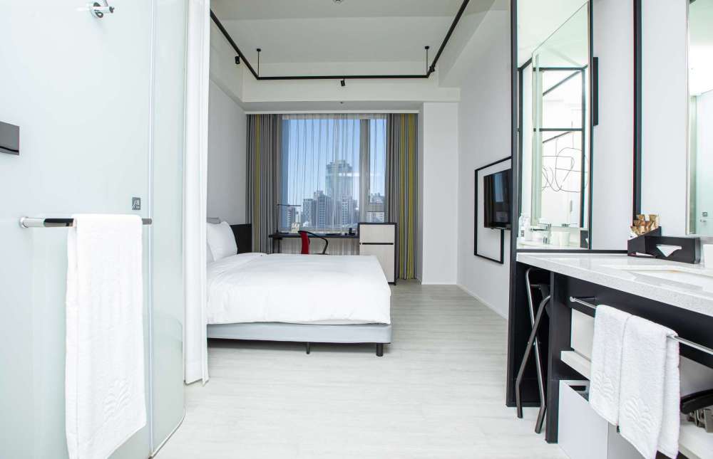 以空間配置來說相當簡單,黑白色與簡單線條搭配非常時尚,魅力度也相對高,而且不管是拍攝的美好度或是真正入住的舒適性而言,大毅老爺行旅都有很不錯的表現