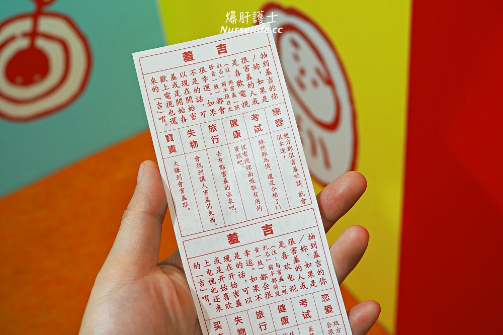 然後爆肝在參訪的時候剛好有期間限定的神社,因此就順手抽了一支籤,內容在影片內都有講了,這裡就不再贅述了。