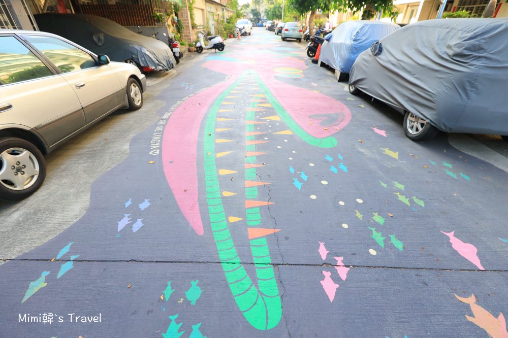 因為作品都超大幅,遠遠就能看到超級明顯,所以也不用管什麼參觀動線,就只要在社區巷弄裡隨意走動。原本的老社區老眷村經過這樣的改造整個氣氛變得超有生氣。