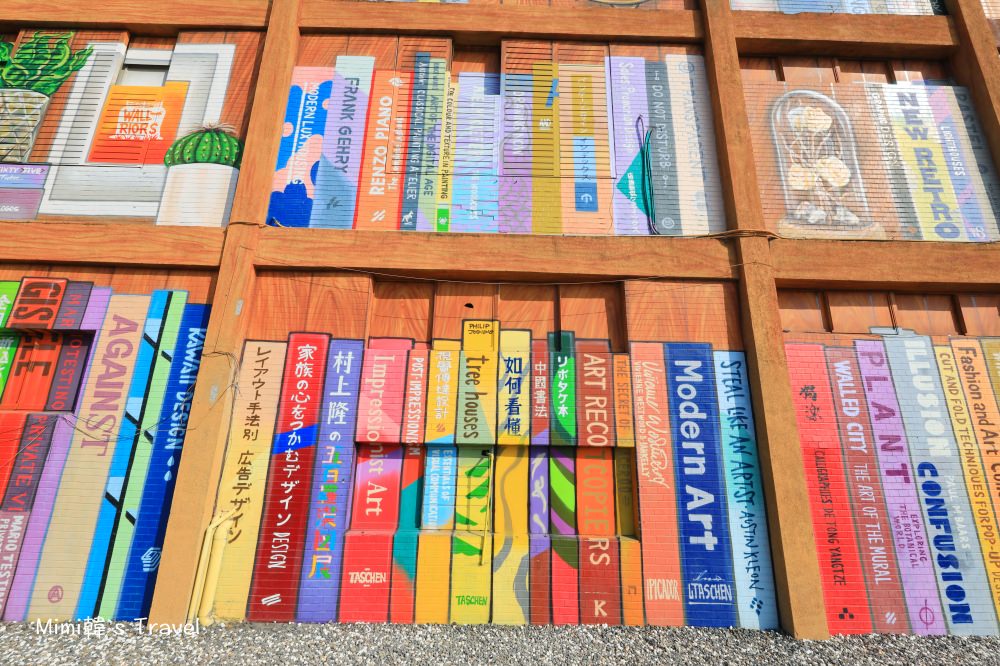 書牆真的是超巨大,人站在前面顯得小小一隻,就算人很多也可以輕易找到拍攝的空檔,也難怪這個巨人書牆當時一曝光就成了高雄熱門IG景點。