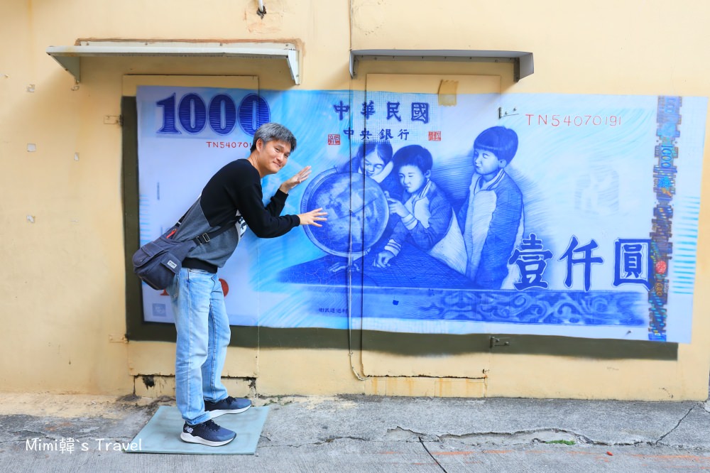 還有這張千元大鈔票,也是衛武迷迷村必拍的彩繪,位置比較隱密,大約在尚勇路與澄清路交叉口的小巷內。