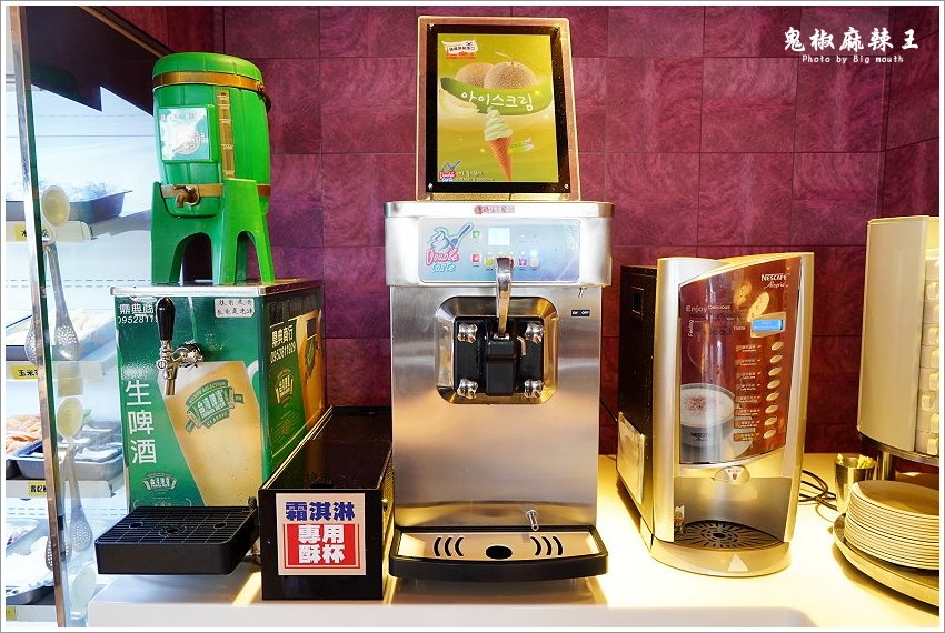▼一旁還有各種冷熱飲品、咖啡機、霜淇淋機與生啤酒,通通都是自取喝到飽!(未滿十八歲請勿飲酒)