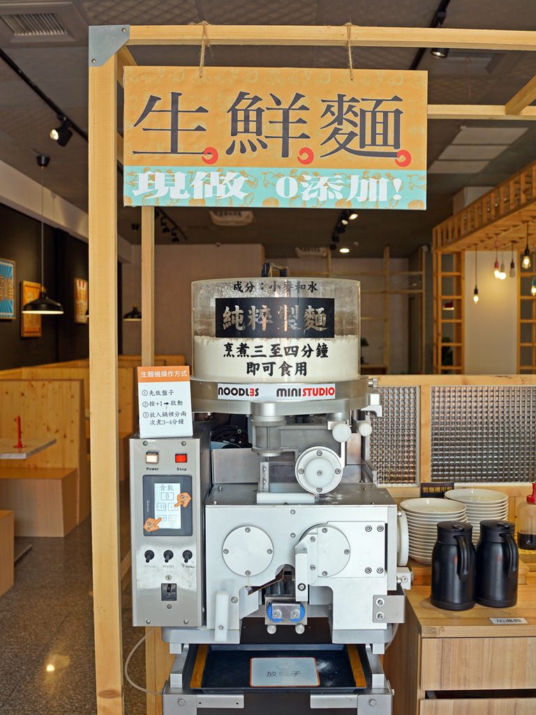 如果附餐不點白飯或冬粉也可以,自助吧有現做生鮮麵的機器可自行操作,按兩個按鈕輕輕鬆鬆就做出一盤生鮮麵,烹煮三至四分鐘就可以吃囉,吃起來跟新鮮手擀麵的口感很像,好吃!