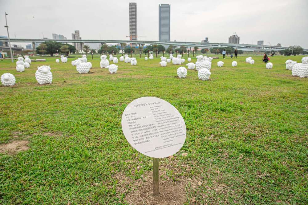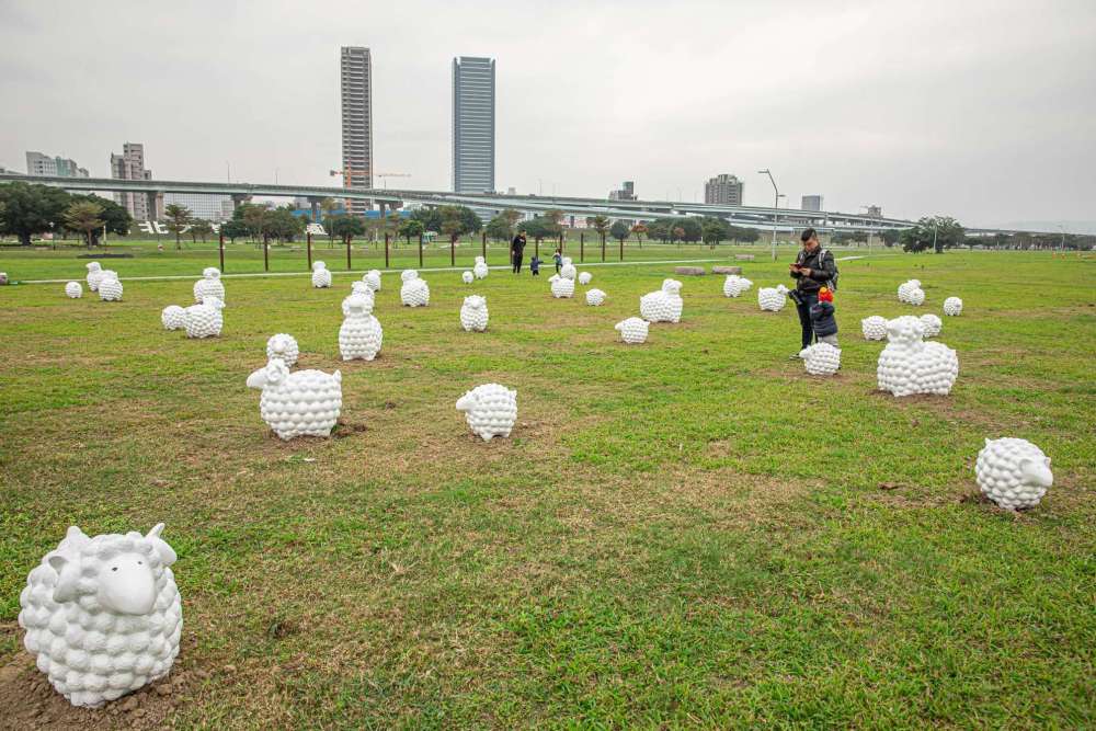 除了分區之外,新北大都會公園也一直都有不同的裝置藝術與環境設計,而熊這次要介紹的裝置藝術詩步領羊,就是與留英藝術家蔡坤霖合作的詩步領羊,從一月一號開始至四月底都會在這裡讓大家可以邊看邊觸摸與拍攝(5月將移到斬龍山遺址文化公園展出)