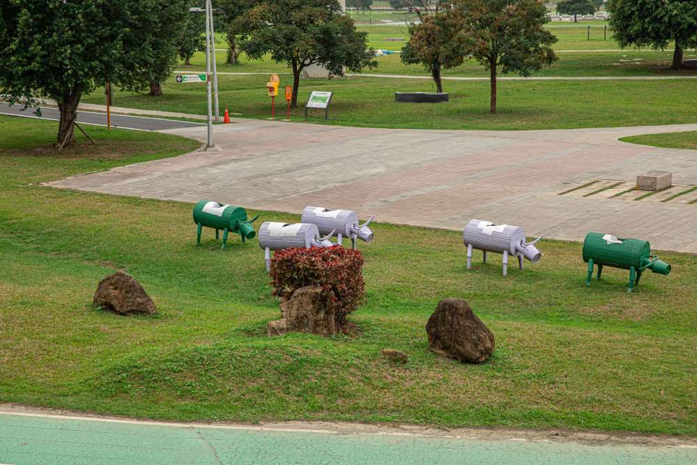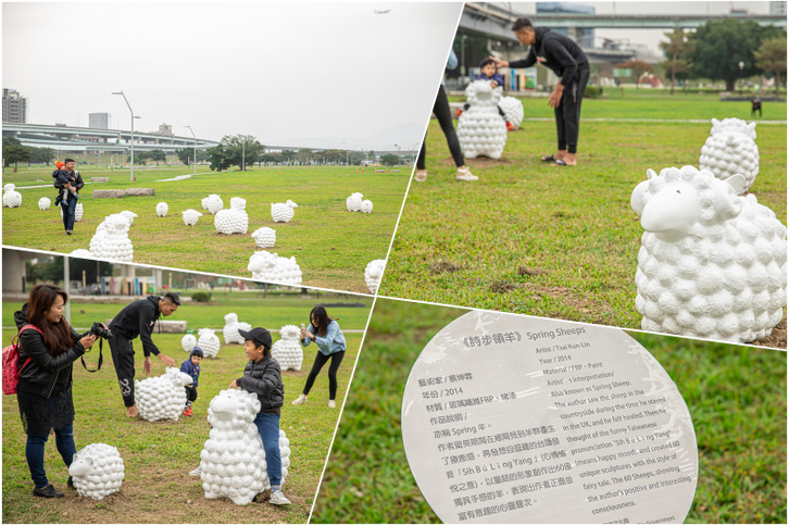 不是因為藝術品不夠多,而是這樣的展覽大多都是會用圍欄圍起來(其實蠻合理,不然會容易損壞),但這次在新北大都會公園,詩步領羊居然是百分百開闊地歡迎大家拍攝與觸碰,現場也看到孩子會靠近甚至爬上