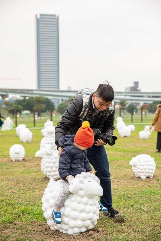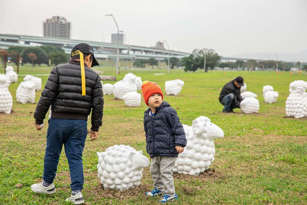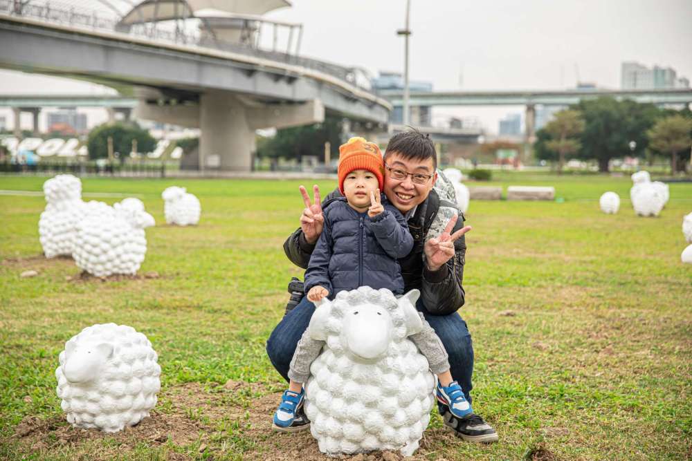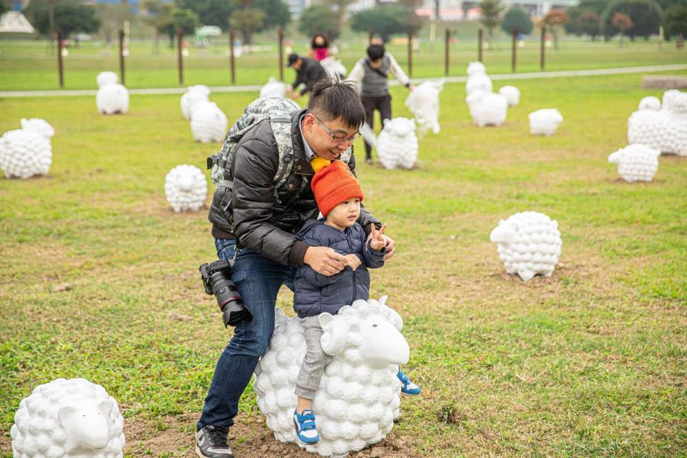 活力超強的溫溫,需要各式各樣的放電場所,但如果要兼具交通方便與合理距離,熊可以跟大家推薦位於新北大都會公園幸福水漾園區的超療癒系裝置藝術詩步領羊,一共有60隻大小綿羊在現場可以拍攝與觸碰,再加上周邊的綠地與絕佳環境,成為雙北市的最佳休憩場所