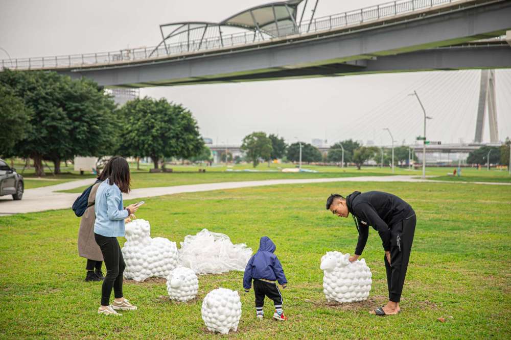 其實這樣的畫面,就是藝術家最希望的情境,希望藉由小綿羊的出現,讓大家的距離可以更接近