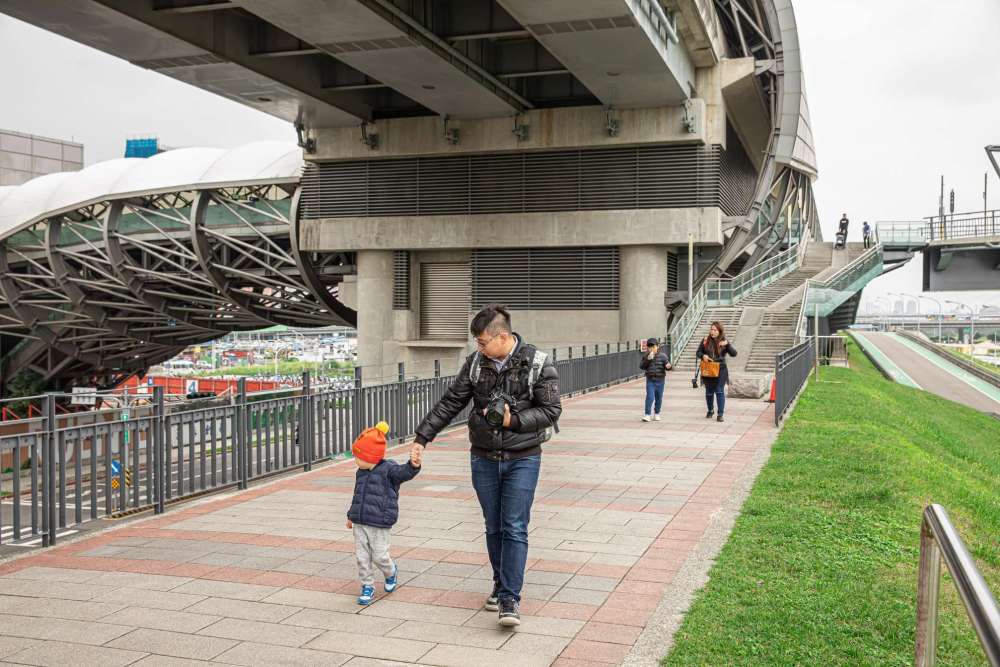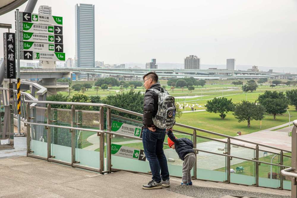 有圖有真相,從1A出口出來之後,格友跟小朋友就開始進行了一場探險活動,往左邊就是非常有名的景點辰光橋,右邊下樓就正式進入新北大都會公園的範圍