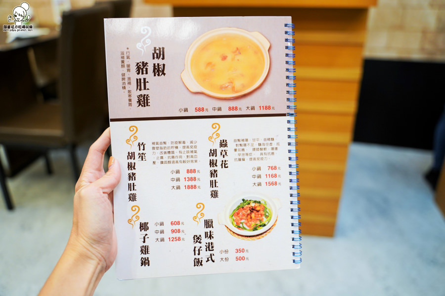 不僅有胡椒豬肚雞,還有竹笙胡椒豬肚雞、蟲草花胡椒豬肚雞、椰子雞、存鈣龍骨鍋