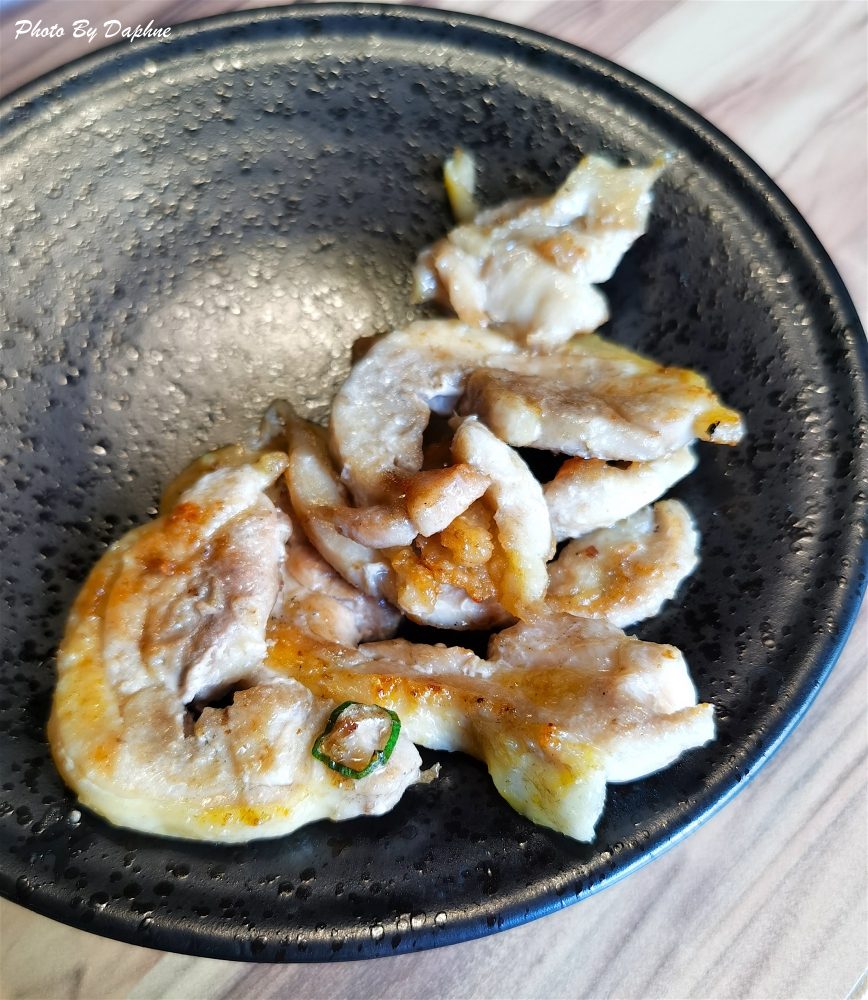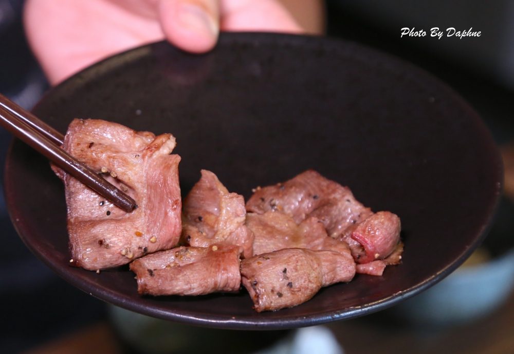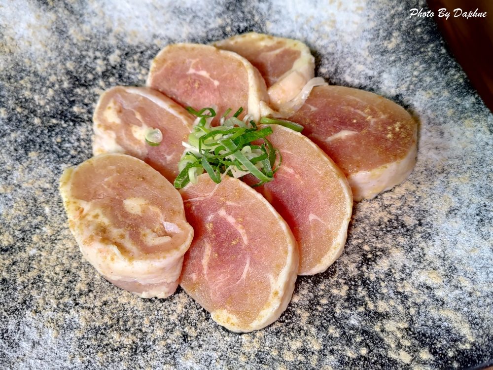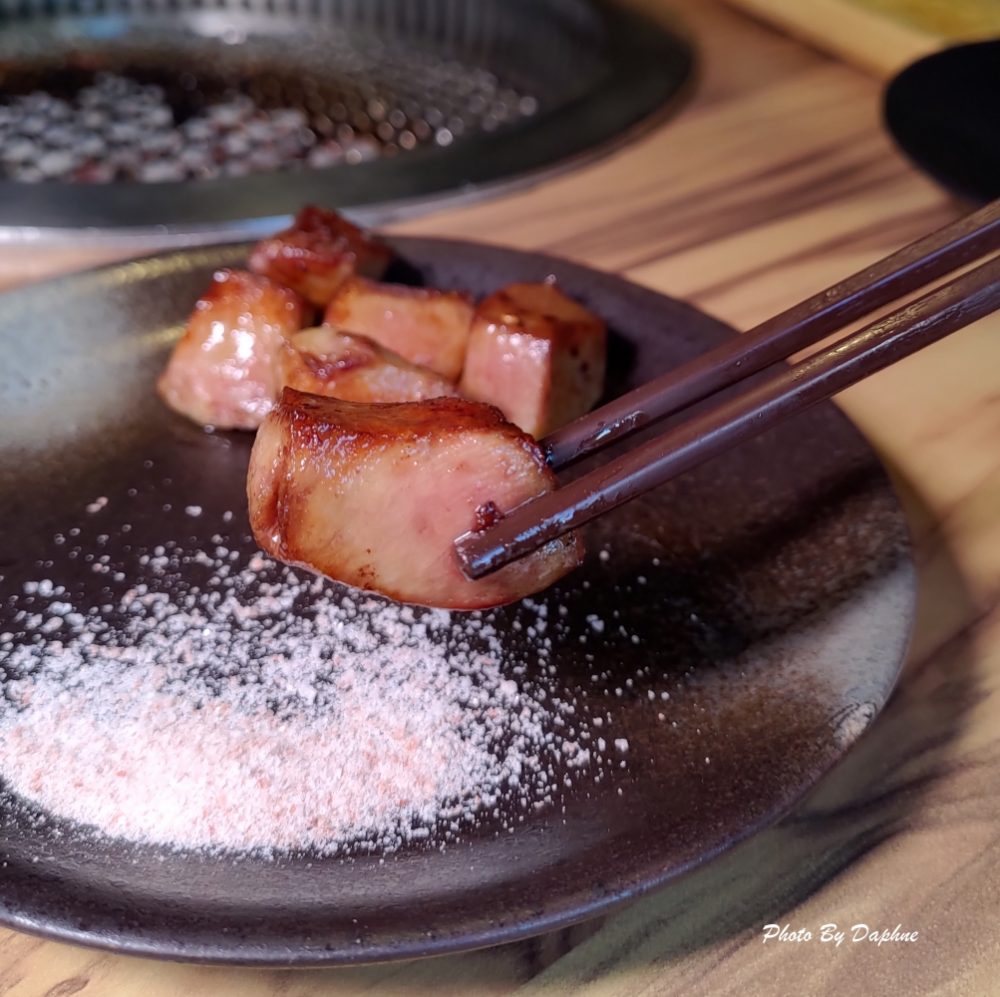 是牛舌七吃中 Daphne 最喜歡的,將外部烤得脆韌帶焦,一小塊讓你嚐到清脆、柔韌、在口中爆汁的多重衝擊,只要沾一點玫瑰鹽就足以擄獲味蕾,是一般有販售牛舌店家比較少的處理方式。
