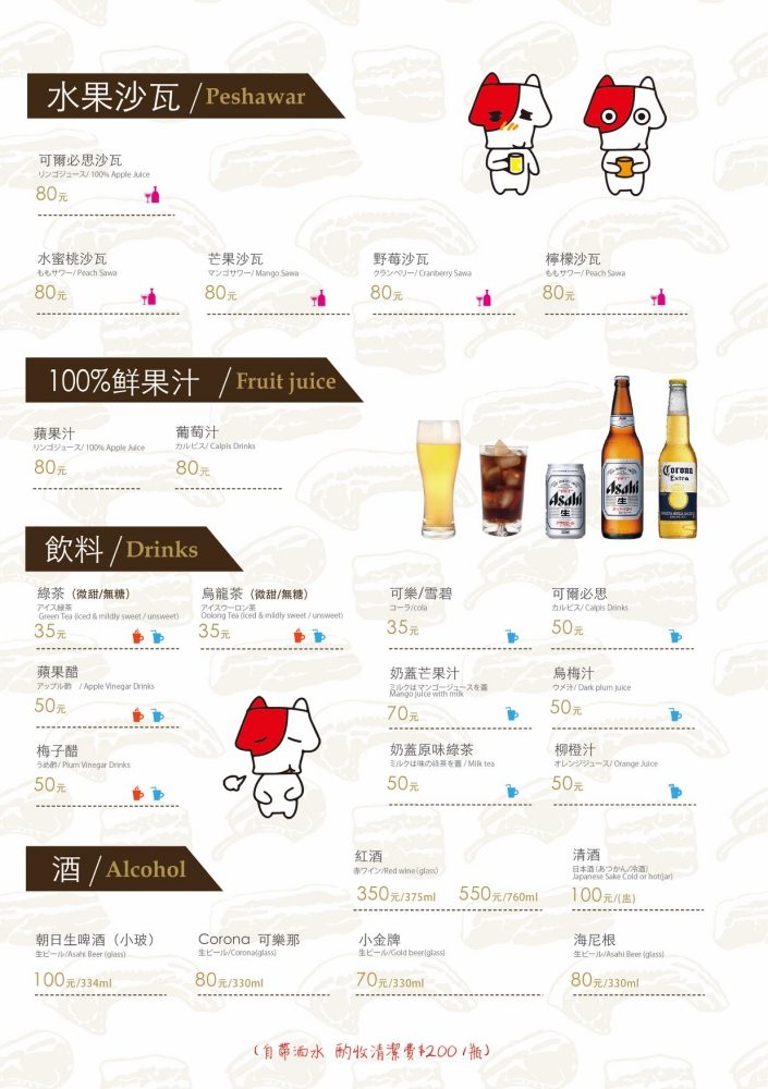 飲品:奶蓋芒果汁NT$50、可爾必思NT$50、可樂NT$35
