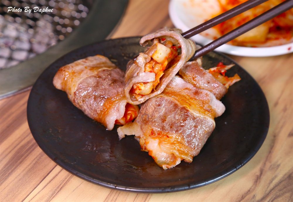 泡菜發酵的時間足夠,酸鹹程度達到平衡,烤一片包覆泡菜,搭配牛肉豐腴肥嫩,同時享受清爽與吃肉的滿足感。