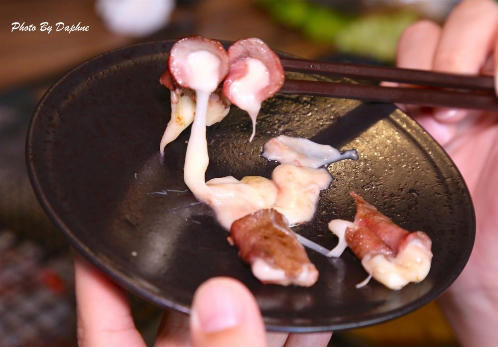 馬茲拉起司質地彈性柔順,風味輕柔溫和,搭配牛舌完全加分不搶味,在燒烤時油脂與起司共同融化,爽嫩綿密。