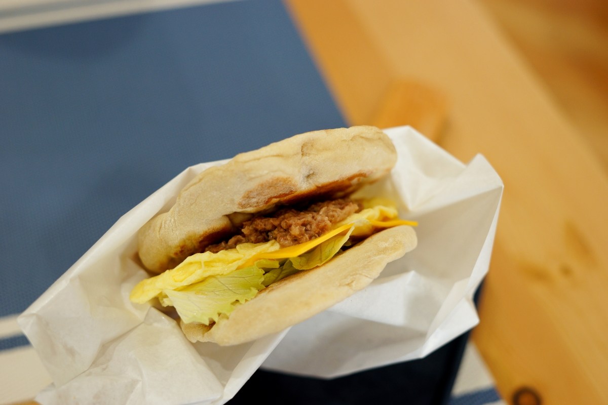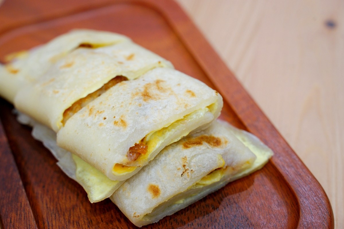 享噹初的蛋餅是自製手工蛋餅,口感軟 Q 有彈性,和 Kurashi 的粉漿蛋餅不太一樣,Kurashi 的表面會煎的掐掐的,而享噹初這裡的蛋餅皮口感整體就是 軟+Q。對於蛋餅皮每個人都有特別喜歡的,先說我自己不特別鍾愛軟 Q 口感,但是我喜歡享噹初的蛋餅。這裡的口感是有靈魂的彈性,不是一般早餐店的軟軟蛋餅皮,ㄉㄨㄞ ㄉㄨㄞ的彈牙感,會讓人想慢慢細細品味。