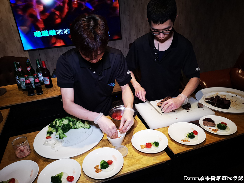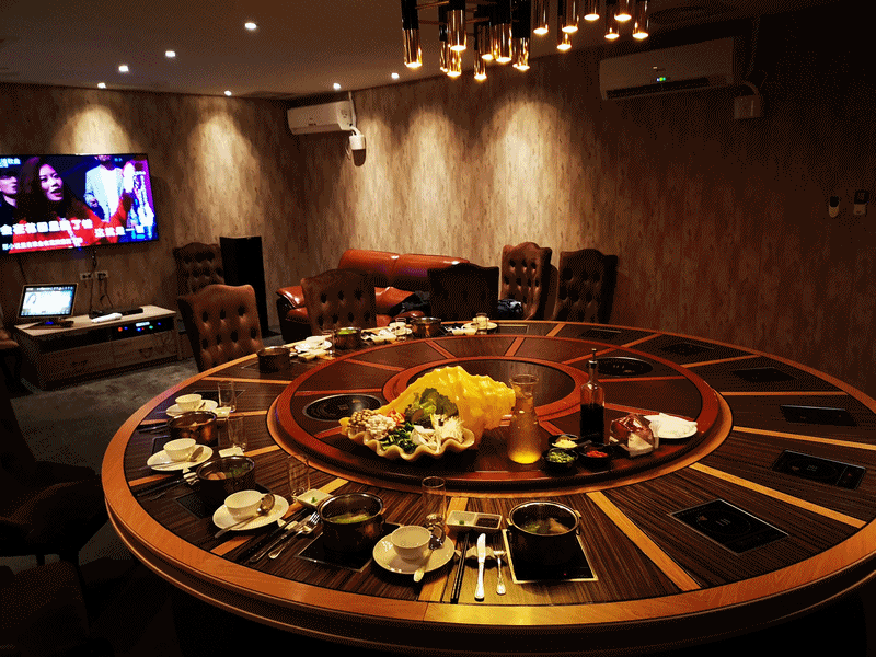 這天我跟朋友們在這個包廂用餐,進到包廂內看到大餐桌和KTV,大家瞬間解放立馬有派對的氛圍,先放一首派對動物暖暖場
