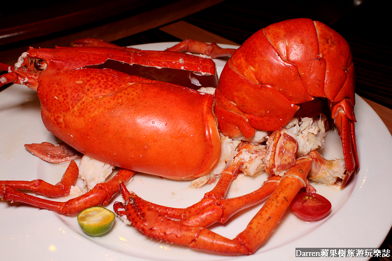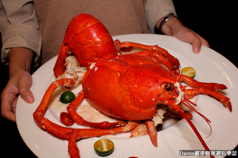 波士頓龍蝦其實也有分等級首先看這個頭大小真得是s級怪獸來著在菊芊會館提供的波士頓龍蝦也是高等級,蝦肉Q嫩吃起來很有口感,尤其是腹肉部份完全不用沾醬吃原味就很利害