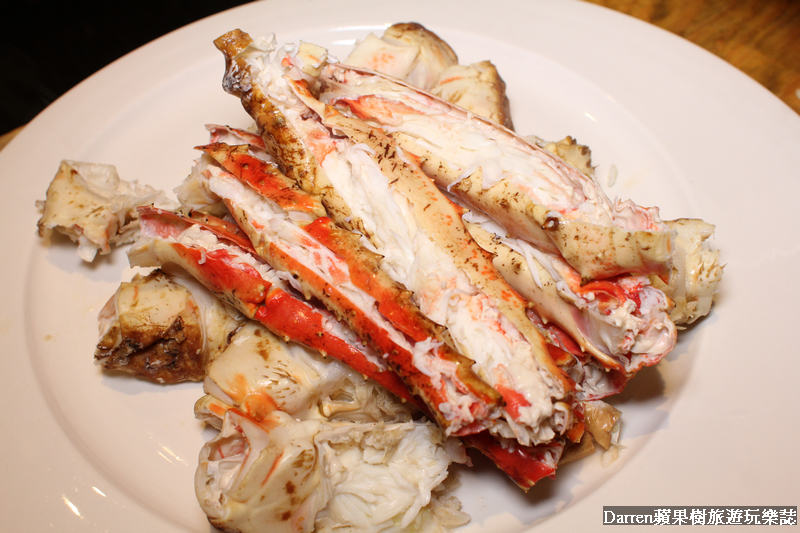看著帝王蟹桌邊秀從蟹腳開始剪下去就開始噴汁然後剪開蟹殼那飽滿蟹肉讓我邊拍邊吞口水太煎熬啦!!!處理好立馬先嗑帝王蟹腳那細嫩超甜的口感讓大家都低頭不語只想著要把這美味收入口中,邊吃邊想不知道幾時還能相遇這美味的帝王蟹啊!!