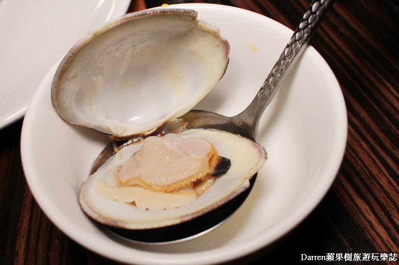 活跳跳一碰就會開始扭動的活鮑魚,新鮮度不用多作解釋,這個頭大小也很驚人,活鮑魚下鍋煮幾分鐘,不要煮太久會太老肉會變硬,活鮑魚肉非常彈牙鮮嫩,不會有腥味反而有明顯甜度,決定美味的瞬間就是咬下去第一口,瞬間絕對就是你了!!那種一見鍾情的爽度,只有吃過才能感受到這種剎那間的反應