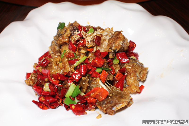 魚身的部份做成火鍋生魚片而其他部位就會用別的料理方式上桌石斑魚經過爆炒過後變成香辣下酒菜就連魚骨旁的魚肉我也不放過