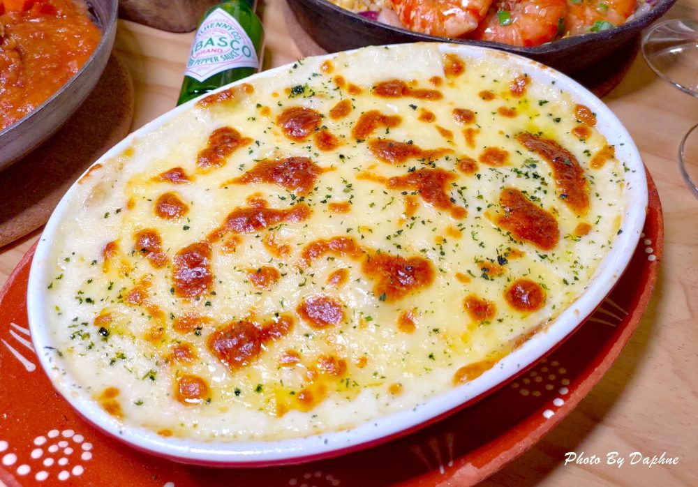 馬介休是葡萄牙語「「Bacalhau」」翻譯而來,意思是用鹽醃的鱈魚乾,是葡萄牙人傳統保存鱈魚的方式。忌廉則是 cream 的廣東話音譯,即奶油。挖開起司後,底下都是大塊的鱈魚,雖然經過鹽醃風乾,但是肉質上仍細緻無比,鹽醃鹹味經過起司調和後更好入口。內部照自認拍得不好看所以不放了。