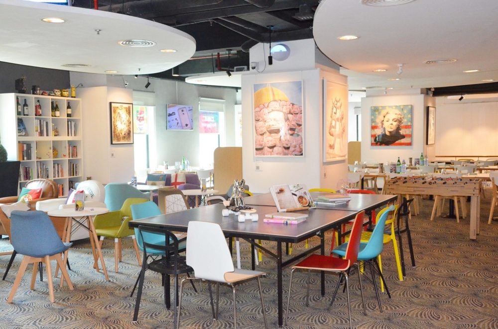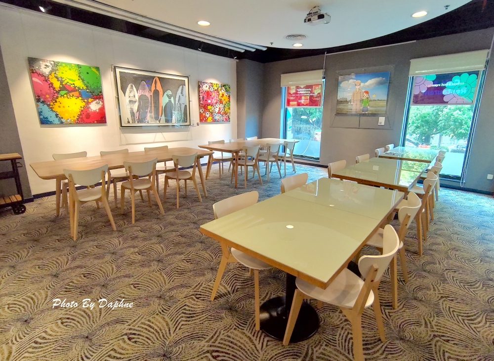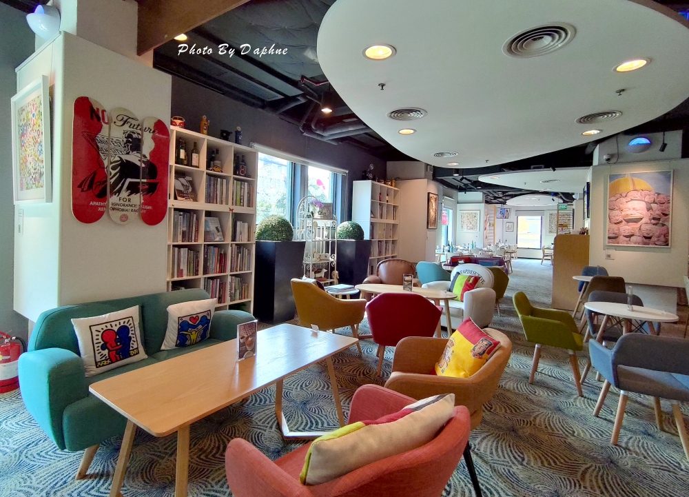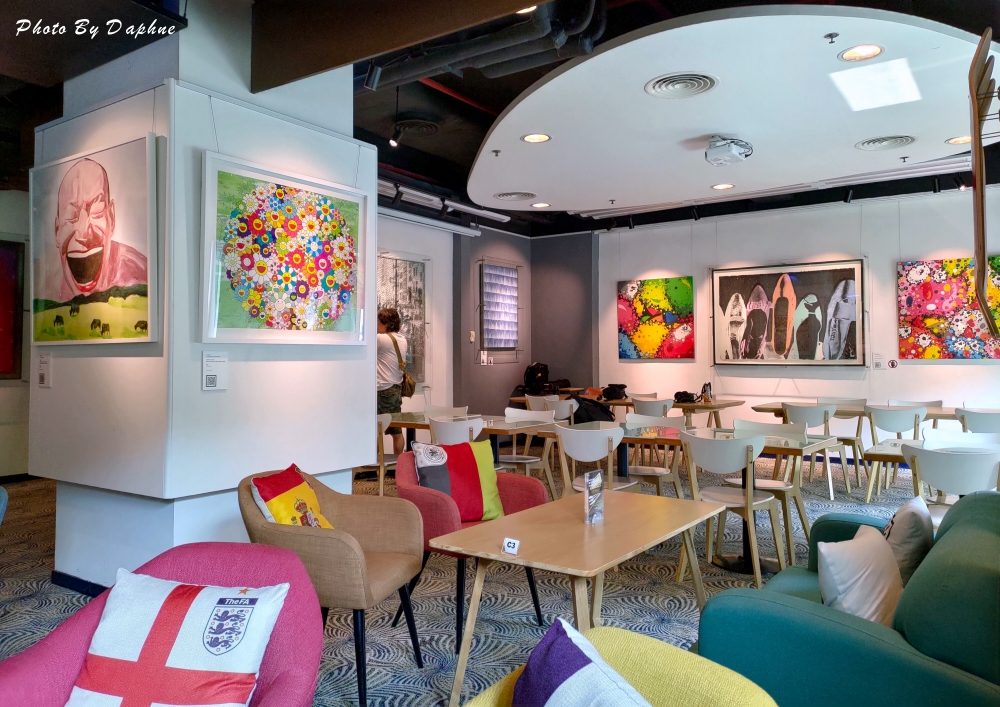 餐廳用藝術作品陳設,整體顏色明亮輕快,不少都是我們熟悉的藝術家作品,如 Andy Warhol、草間彌生、奈良美智、村上隆。還是多功能的空間,除了是餐廳,也是遊戲區與閱覽區,或是享受美食配著歷史街景。
