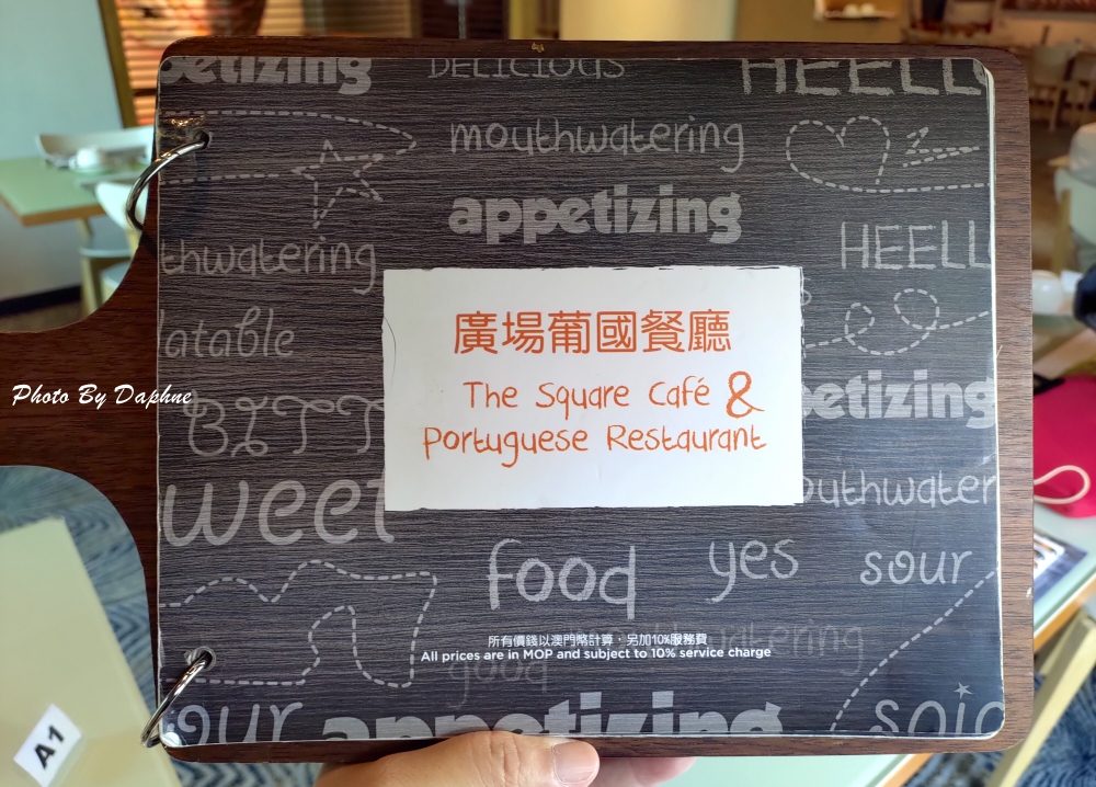 根據酒店官網的介紹,廣場葡國餐廳主要販售葡國菜和土生菜,採用葡國特別香料入菜,在烹調過程不會使用味精。葡萄牙菜多以葡萄牙內陸禽類、農作物、南歐沿海漁獲入菜,喜歡用橄欖油、大蒜、香草、番茄來調味,而土生菜則是澳門土生葡人流傳下來的飲食文化,以葡萄牙菜為基礎,融入前葡萄牙殖民地的飲食特色,甚至土生葡人美食烹飪技藝還被列入澳門非物質文化遺產來保護與推廣。