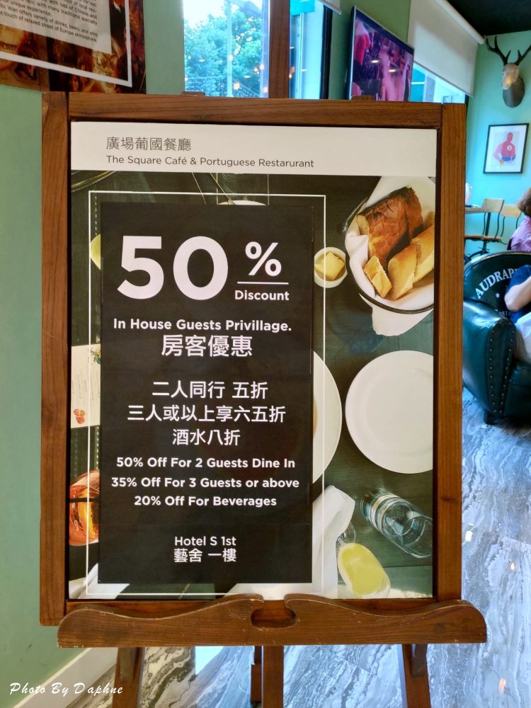 藝舍房客來廣場葡國餐廳用餐,享兩人同行有五折優惠,懶得出門覓食時,在飯店內舒服的吃一道料理也不錯,特別是帶小小孩出門的親子客,更是方便許多。